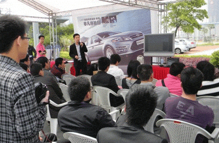 【泉州驾校网www.0595jx.com讯】本站新手购车栏目小编有话:长安福特福建丰裕和福建丰祥4S店联合举办“新动力强‘试’出击 2011新福特蒙迪欧致胜强悍试驾体验日”于上周六(4月23日)泉州海峡体育馆圆满落幕,活动当天吸引了泉州各界人士和车迷们的参与。
