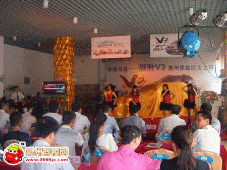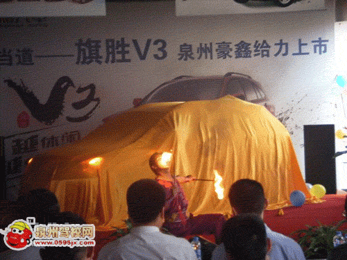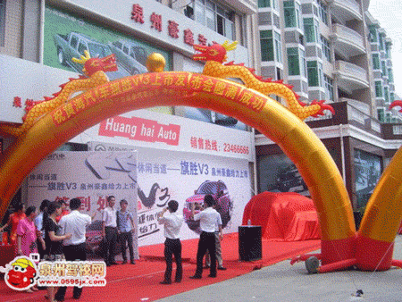 【泉州驾校网www.0595jx.com讯】本站新手购车栏目小编有话:5月22日,旗胜V3上市仪式于泉州清濛开发区的鸿盛汽车城黄海汽车泉州豪鑫汽车展厅融重举行,当天展厅人潮如鲫,拱门林立,热闹非凡,来自厂家,区域,和其他兄弟经销商,当地的黄海汽车爱好者,以及车界的主流媒体共200多人参与了本次上市盛典。