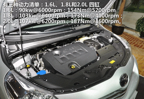 广汽丰田逸致上市后将搭载1.6L、1.8L和2.0L三款发动机,入门级的1.6L车型采用的是1ZR汽油发动机,其最大功率、扭矩分别为90kw/6000rpm、154Nm/5200rpm;1.8L车型采用的是2ZR汽油发动机,其最大功率、扭矩分别为103kw/6400rpm、173Nm/4000rpm;2.0L车型采用的是3ZR汽油发动机,其最大功率、扭矩分别为106kw/6400rpm、187Nm/3600rpm。除了2.0L发动机为原装进口之外,1.6L、1.8L两款发动机均由一汽丰田生产,以满足不同消费者需求。