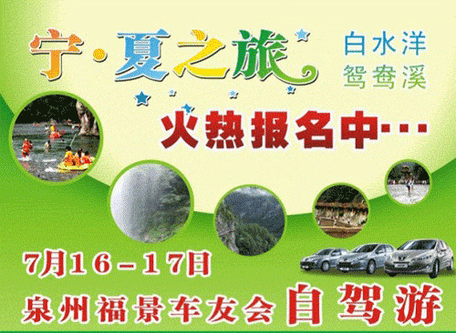 【泉州驾校网www.0595jx.com讯】本站新手购车栏目小编获悉:泉州福景标致4S店夏日激情自驾游开始报名了!只要是东风标致车主们都有机会感受趟涉 “十里水上长街”的切肤之爽、体验百米天然冲浪滑道的刺激、游览全国唯一的“鸳鸯、猕猴自然保护区等独特的体验。相信您不会错过泉州福景4S店为您精心策划且独一无二的完美旅程,让这个夏天更快乐些吧!名额有限,欲报从速!
