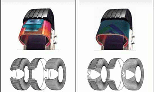2.胎冠带束层:双层或3层加强带束层具有垂直方向上的柔韧度和极高的横向刚性,提供转向力。