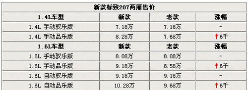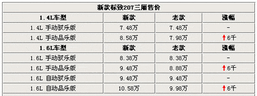 据该知情人士透露:2011款标致207依然分为1.4L和1.6L两个排量,其中两厢、三厢各六款,共12款车型。由于新款207中品乐版配置的增加,遂在品乐版售价方面将上调6000元,由老款的7.18万——9.68万元调整到7.18万——10.58万元。