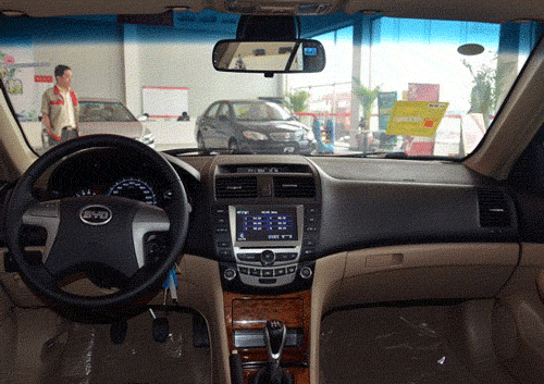比亚迪F6的内饰设计借鉴了广本第七代雅阁,只是在中控面板布局上做了调整,整体色调搭配及布局与沉稳大气的外形协调统一。在配置方面,比亚迪F6全系标配有ABS+EBD、双安全气囊、双区独立自动空调和高级打孔豪华座椅。另外,除最低配车型外,DVD、语音导航系统、双层双模式电动天窗等都在其他车型中都可找到。两款高配车型还安装了定速巡航系统,配置相当丰富。