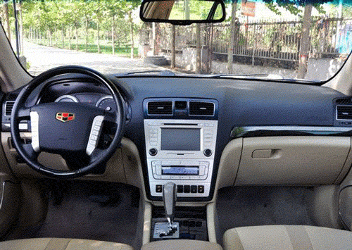 帝豪EC8采用黑米色分段式搭配,穿插类钢琴烤漆的装饰条和饰板,内饰用料较以往车型有较为明显的进步,只是内饰及中控台、仪表盘的设计并没有什么新意。四向式方向盘集成了多种功能键于一身,方便驾驶者在驾车过程中,快捷、安全地调用相关内容、信息。