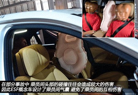 在车辆发生侧向碰撞时,乘客距离车门越远,其避免受伤的可能性也就越大。PRE-SAFE预防性安全系统在碰撞发生时可以利用座椅侧面支撑内的气囊将乘客推向汽车中央,从而减少碰撞对乘客的伤害。另外考虑到很多事故中乘客之间碰撞所产生的伤害,ESE概念车还设有座位间保护系统,可在事故中避免乘员间的相互伤害。