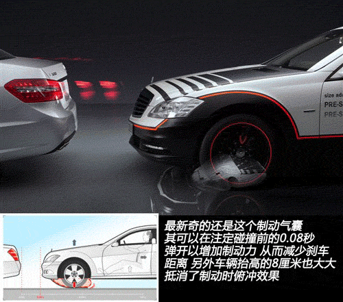 最后介绍的制动气囊听起来就十分新奇,其安装于发动机底部,在车辆判断碰撞不可避免时则会自动弹出。这项技术具有三个优点;首先是其弹出时减速度能迅速提高20米/秒,有效降低事故损害,其次车头被抬高8厘米可以防止俯冲效应,让防撞梁与前车相撞,最后车辆在“抬头”时也可抵消以部分乘客前倾的力,减小脖颈伤害。