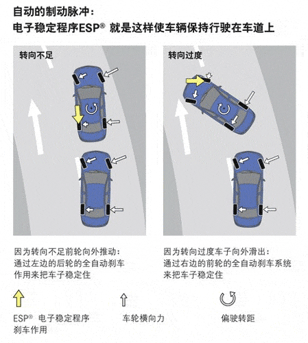另外,有的朋友以为有了ESP就可以提升过弯极限或者增强过弯乐趣,这也是错误的认识。ESP的作用只会在车子到达或超越极限时才会表现出来,让车子不会彻底失控,减低发生事故的可能性。当车子没有到达底盘极限,例如日常驾驶时,ESP是完全不起作用的,它并不是一个提升驾驶乐趣的装备,而是一个提升安全系数的装备。