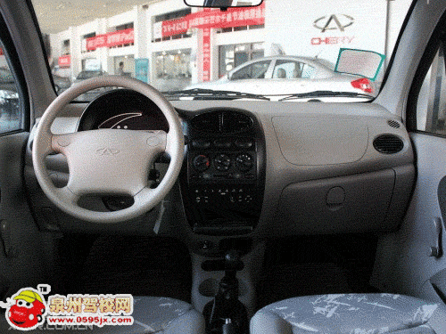 内饰篇:QQ3的车厢内饰风格非常普通,采用介于米色与灰色之间的色调搭配,这样比较实用耐脏,整体造型也象外观一样以圆润为主要素。QQ3的仪表盘是比较有特点的,没有采用普遍的指针式,而是一个椭圆形的液晶屏,转速、时速、里程、油表和水温表都集中显示在上面,里程和时速都以数字方式体现。